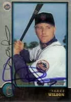 Vance Allen Wilson is a former professional baseball player and current bullpen coach for the Kansas City Royals. He played all or part of eight seasons in Major League Baseball, primarily as a catcher. Listed at 5'11" tall and 215 pounds, he batted and threw right-handed during his career.