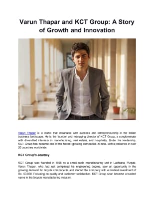 Varun Thapar is an Indian entrepreneur and Director of KCT Coal Sales, a company formed after the division of Thapar Group.