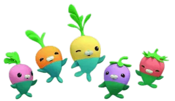 The Vegimals are adorable little creatures that are half vegetable, half animal. They all enjoy cooking, gardening, singing, jumping, and helping the other Octonauts whenever they can. They speak Vegimalese, their own special language. Shellington is usually the only one who can understand what they are saying.