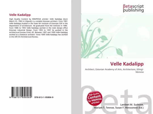 Velle Kadalipp is an Estonian architect. From 1981 Kadalipp studied in the State Art Institute of Estonian SSR in the department of architecture. He graduated from the institute in 1986. From 1986 to 1993 Velle Kadalipp worked in the state design office Estonian Industrial Design.