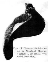 The Venus of Monruz is a Venus figurine of the late Upper Paleolithic, or the beginning Epipaleolithic, dating to the end of the Magdalenian, some 11,000 years ago. It is a black jet pendant in the shape of a stylized human body, measuring 18 mm in height.