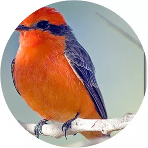 The vermilion flycatcher or common vermilion flycatcher is a small passerine bird in the Tyrannidae, or tyrant flycatcher family. Most flycatchers are rather drab, but the vermilion flycatcher is a striking exception.