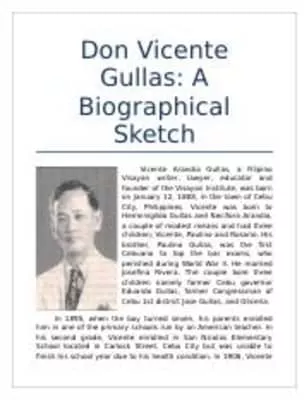 Vicente Arandia Gullas was a Filipino writer, lawyer, and educator from Cebu, Philippines. Founder of the Visayan Institute, he introduced innovation in educational system through the establishment of ...
