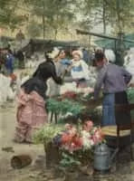 Victor Gabriel Gilbert was a French painter mostly known for his Parisian scenes and portraying market scenes there. He studied with Victor Adam and subsequently with Charles Busson. In 1889 he was awarded a silver medal in the Société des Artistes Français, and a Bonnat prize in 1926 at the end of his career.