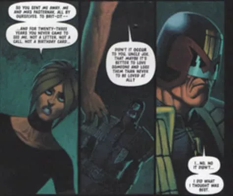Edit. Vienna Pasternak or Dredd is Judge Dredd's niece, the daughter of his corrupt brother Rico Dredd, and was orphaned when Dredd was forced to kill her father. It has been shown that Vienna is the only thing in the world Dredd cares about besides the law.