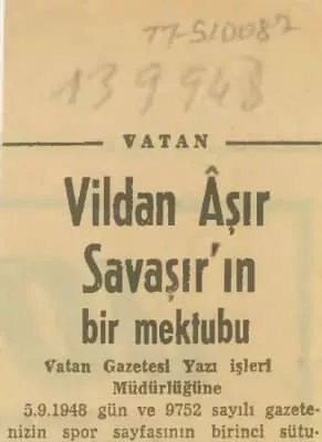 Vildan Aşir Savaşır was a Turkish athlete and sports executive. He was born in Istanbul in 1903, graduated from Galatasaray High School. He planned to compete at the long jump event at the 1924 Summer Olympics but didn't start.