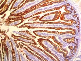 Villin is a 92. 5 kDa tissue-specific actin-binding protein associated with the actin core bundle of the brush border.