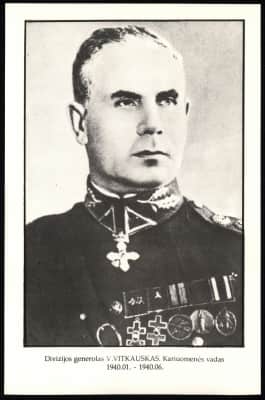 Vincas Vitkauskas was a Lithuanian general. He became commander of the Lithuanian Army after the resignation of Stasys Raštikis in January 1940. In this capacity, Vitkauskas opposed armed resistance to the Soviet occupation in June 1940 and subsequently collaborated with the new Soviet regime.