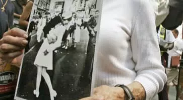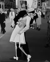 V-J Day in Times Square is a photograph by Alfred Eisenstaedt that portrays a U. S. Navy sailor grabbing and kissing a stranger—a woman in a white dress—on Victory over Japan Day in New York City's Times Square on August 14, 1945.