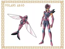 Volans Argo (飛び魚座のアルゴ, Tobi'uo-za no Arugo)is a Saint Apprentice, fellow student of Kōga and Sōma, to whom he is hostile. Argo can use the element of Water.