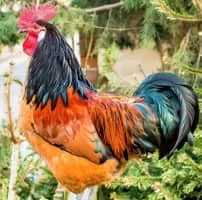 The Vorwerk is a breed of chicken originating in Germany. Though it is unrelated to the German company which produces the Vorwerk vacuum cleaner, it is the only chicken to share its name with a brand of household appliance. A rare fowl, it has distinctive black-and-gold plumage.