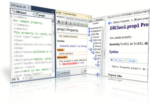 VSdocman is a documentation generator that allows for code commenting and the automatic generation of technical documentation from C# and VB .NET projects. It is directly integrated in Visual Studio as an extension.