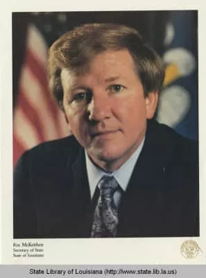 Walter Fox McKeithen served five terms as Secretary of State of Louisiana between 1988 and 2005. He is best known for merging the state's election divisions into one department and for the promotion of historical preservation.