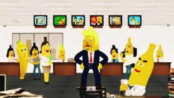 A crew of banana-men employed at a television station do their best to fulfill their boss' wild requests.