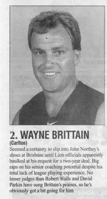 Wayne Brittain is a former coach of the Carlton Football Club in the Australian Football League.
