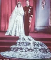 The wedding dress of Princess Elizabeth was worn by the future Queen Elizabeth II at her wedding to Philip Mountbatten, Duke of Edinburgh on 20 November 1947 in Westminster Abbey. Given the rationing of clothing at the time, she still had to purchase the material using ration coupons.
