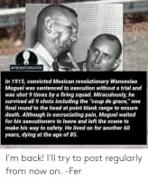 Wenceslao Moguel Herrera, known in the press as El Fusilado, was a Mexican soldier under Pancho Villa who was captured on March 18, 1915 during the Mexican Revolution, and survived execution by firing squad. He was sentenced to death without a trial, and was shot 8–9 times in the body.