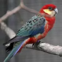 The western rosella, or moyadong, is a species of parrot endemic to southern Western Australia. The head and underparts are bright red, and the back is mottled black; a yellow patch at the cheek distinguishes it from others of the genus Platycercus.