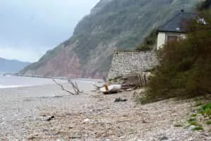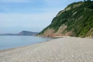 Weston Mouth is an isolated beach on the East Devon coast between Sidmouth and Seaton in England. It can be reached only by footpath, either along the South West Coast Path or from the village of Weston. The beach is mostly shingle with some sand at low tide, and has no facilities.