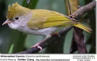 The white-bellied erpornis or simply erpornis is a species of bird. It is the only member of the genus Erpornis. This bird is found in Bangladesh, Bhutan, Brunei, Cambodia, China, India, Indonesia, Laos, Malaysia, Myanmar, Nepal, Singapore, Taiwan, Thailand, and Vietnam.