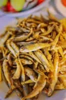 Whitebait is a collective term for the immature fry of fish, typically between 1 and 2 inches long. Such young fish often travel together in schools along the coast, and move into estuaries and sometimes up rivers where they can be easily caught with fine meshed fishing nets.