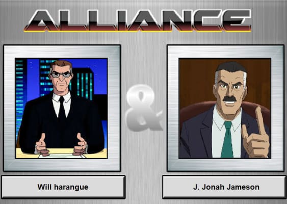 William "Will" Harangue is a loud-voiced television newscaster and the host of Harangue Nation and The Harrangue Show who first appeared in Fame.