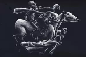 William J. Schaff Jr. is an artist and musician based in Warren, Rhode Island and Oakland, California. He is known for artwork for the bands Okkervil River, Songs: Ohia, Godspeed You! Black Emperor, and The Mighty Mighty Bosstones.
