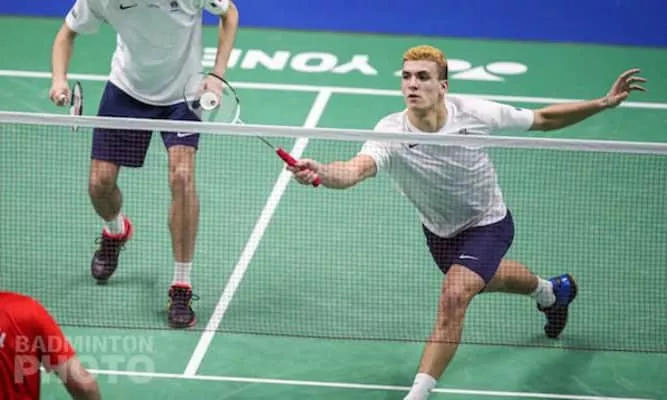 William Villeger is a French badminton player affiliated with ASPTT Strasbourg club. He won the European junior championships in boys' doubles event in 2018 and won another gold in team event too.