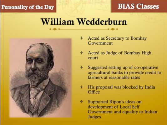 Sir William Wedderburn, 4th Baronet, JP DL was a British civil servant and politician who was a Liberal Party member of Parliament. Wedderburn was one of the founding members of the Indian National Congress. He was also the president of Congress in 1889 and 1910, for the Allahabad session.