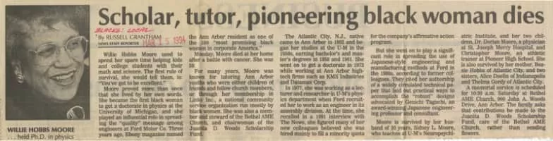 Willie Hobbs Moore was an American physicist and engineer. She was the first African-American woman to earn a Ph. D. in physics.