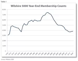 The Wilshire 5000 Total Market Index, or more simply the Wilshire 5000, is a market-capitalization-weighted index of the market value of all US-stocks actively traded in the United States. As of June 30, 2018, the index contained only 3,486 components.