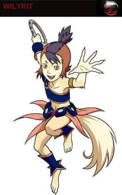 WilyKit is the female Thunderkitten, the sister of WilyKat, and she is the youngest of the Thundercats. They were close to Lion-O's age when escaping Thundera before its destruction. However, their suspension capsules aboard the Thunderian Flagship worked and maintained their age while Lion-O's capsule did not.