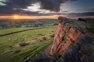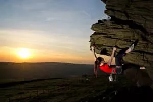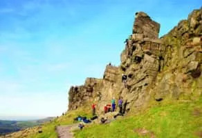 The Windgather Rocks is a gritstone crag on the Derbyshire–Cheshire border in England. It is in the Peak District National Park and is a popular site for learning the rudiments of rock climbing. As the name suggests the area is exposed to the prevailing westerly winds.