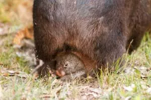 Wombats are short-legged, muscular quadrupedal marsupials of the family Vombatidae that are native to Australia. Living species are about 1 m in length with small, stubby tails and weigh between 20 and 35 kg.