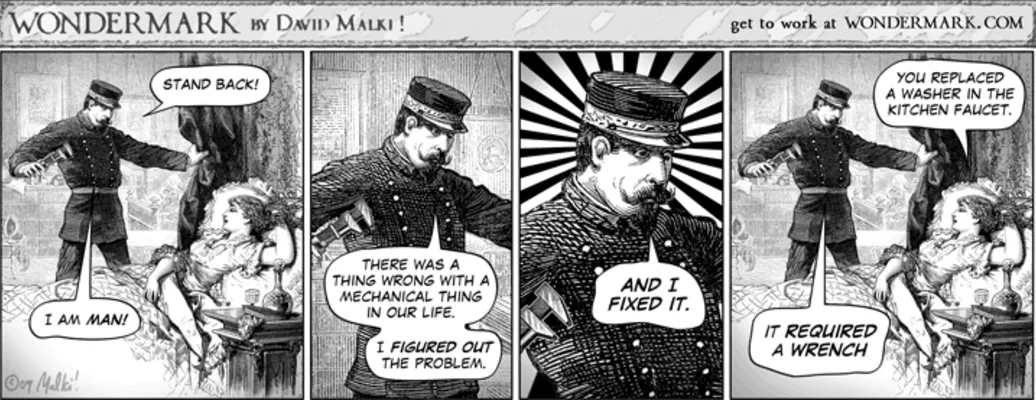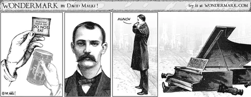 Wondermark is a webcomic created by David Malki which was syndicated to Flak Magazine and appeared in The Onion's print edition from 2006 to 2008. It features 19th-century illustrations that have been recontextualized to create humorous juxtapositions.
