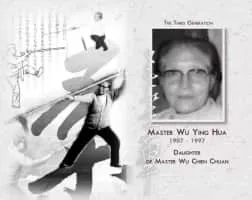 Wu Yinghua was a famous Chinese teacher of Wu-style t'ai chi ch'uan. She was born in Beijing and died in Shanghai. She was the eldest daughter of Wu Chien-ch'uan, the best known teacher of Wu-style t'ai chi ch'uan. Her older brothers were Wu Kung-i and Wu Kung-tsao.