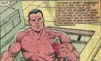 Wyatt Wingfoot is a fictional supporting character appearing in American comic books published by Marvel Comics. While having no superpowers, he has spent much time in the company of the Fantastic Four due to his friendship with Human Torch, and his relationship with occasional Fantastic Four member She-Hulk.