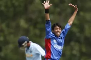Mohammad Yamin Ahmadzai is an Afghan cricketer. Ahmadzai is a right-handed batsman who bowls right-arm medium-fast. He was born in Laghman Province. He was one of the eleven cricketers to play in Afghanistan's first ever Test match, against India, in June 2018, and took Afghanistan's first wicket in Test cricket.