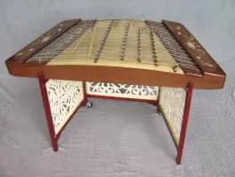 The trapezoidal yangqin is a Chinese hammered dulcimer, likely derived from the Iranian santur or the European dulcimer. It used to be written with the characters 洋琴, but over time the first character changed to 揚, which means "acclaimed". It is also spelled yang quin or yang ch'in.