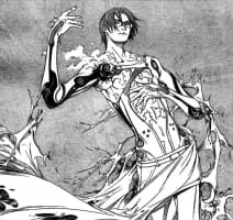 Yasuyoshi Sano (左 安良, Sano Yasuyoshi?), known as 'Aeon Clock', was a Storm Rider who was once a member of Behemoth. After Behemoth was disbanded, he was recruited into Genesis by Simca the Swallow and served as an ally to Kogarasumaru.