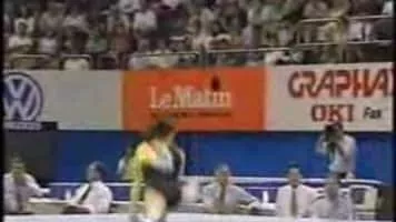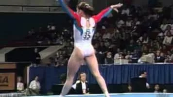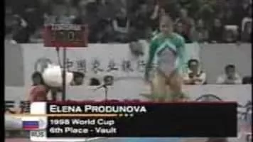 Yelena Sergeyevna Produnova, also known as Elena, is a Russian former competitive gymnast. Her senior international career lasted from 1995 to 2000 and earned her multiple world and Olympic medals. She was known for her innovative and powerful skills on the vault and floor exercise.