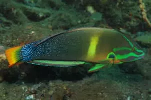 Coris gaimard, the yellowtail wrasse or African coris, among other vernacular names, is a species of wrasse native to the tropical waters of the central Indian Ocean and the western Pacific Ocean, from Christmas Islands and Cocos Keeling Islands to the Society Islands, Hawaii, and from Japan to Australia.