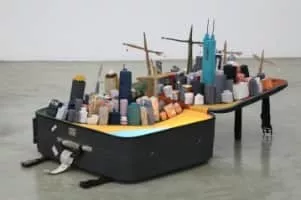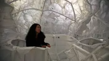 Yin Xiuzhen is a Chinese sculpture and installation artist. She incorporates used textiles and keepsakes from her childhood in Beijing to show the connection between memory and cultural identity.