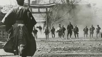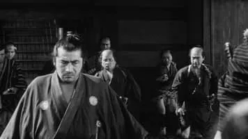 A nameless ronin, or samurai with no master (Toshirô Mifune), enters a small village in feudal Japan where two rival businessmen are struggling for control of the local gambling trade. Taking the name Sanjuro Kuwabatake, the ronin convinces both silk merchant Tazaemon (Kamatari Fujiwara) and sake merchant Tokuemon (Takashi Shimura) to hire him as a personal bodyguard, then artfully sets in motion a full-scale gang war between the two ambitious and unscrupulous men.