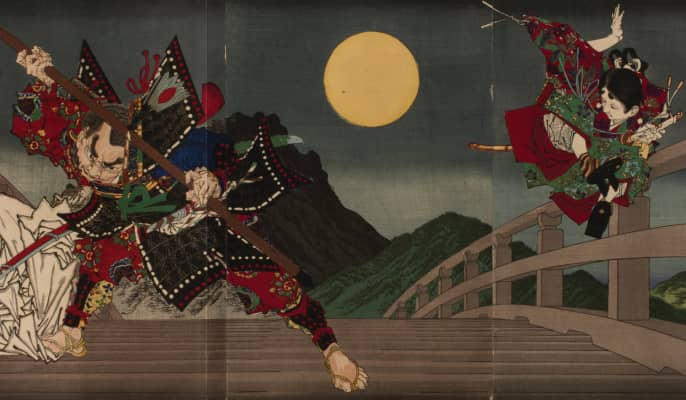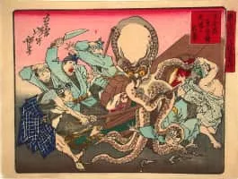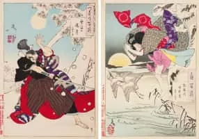 Tsukioka Yoshitoshi was a Japanese printmaker. Yoshitoshi has widely been recognized as the last great master of the ukiyo-e genre of woodblock printing and painting. He is also regarded as one of the form's greatest innovators.