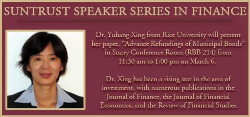 Yuhang Xing is an associate professor of finance at the Jesse H. Jones Graduate School of Business at Rice University. Professor Xing became a faculty member in July, 2003. She earned her Ph.
