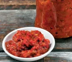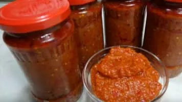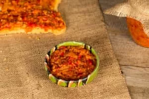 | Main ingredients | Eggplants or cooked beans, roasted red peppers (gogoşari cultivar) |
