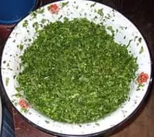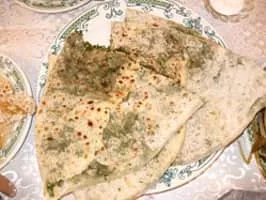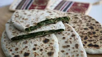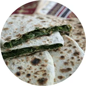 Zhingyalov hats is a type of flatbread stuffed with finely diced herbs and green vegetables. It is a traditional dish of Armenians from Artsakh and Syunik. Zhingyalov hats is similar to other dishes of peoples of the Caucasus: herb qutab and afar.