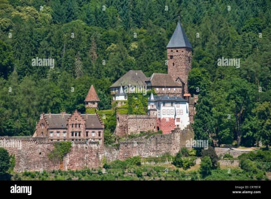 Zwingenberg Castle, also called Zwingenberg or Schloss Zwingenberg, stands on the right bank of the River Neckar where it cuts through the Odenwald hills in central Germany. The castle is located in the municipality of Zwingenberg in the state of Baden-Württemberg.